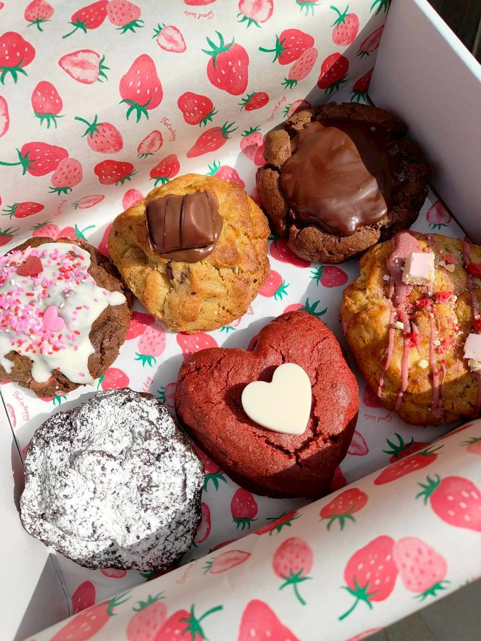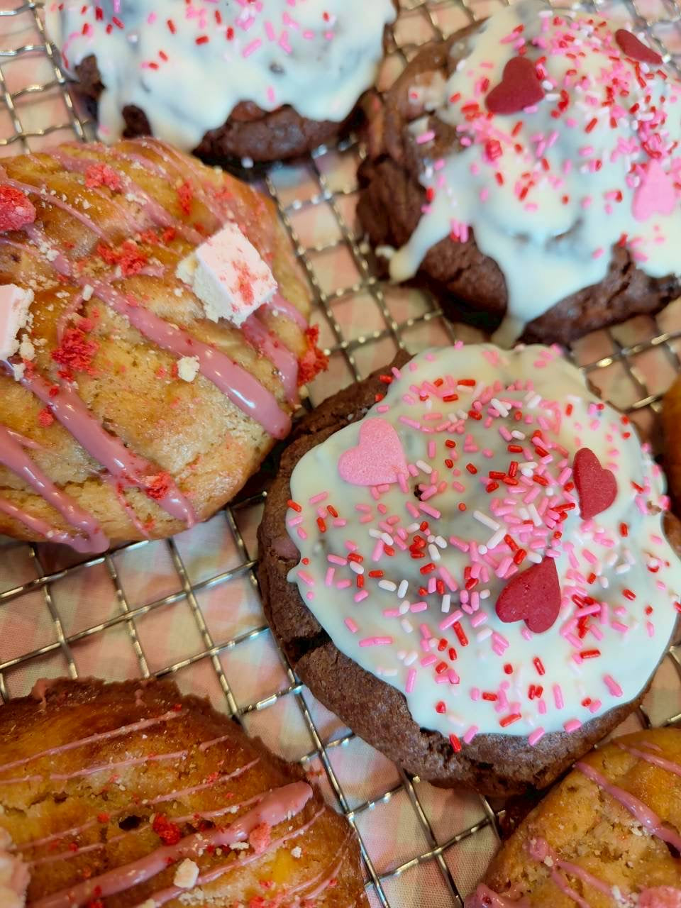 ほんのりベリーの香りがする高級なルビーチョコをたっぷり混ぜ込んだココア生地にホワイトチョコをコーティングしハートのスプリンクルで見た目も